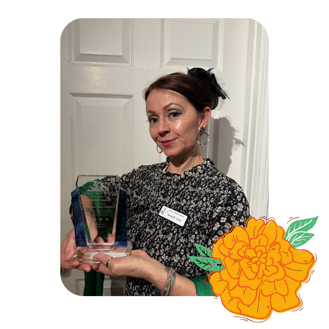 Anna Cruz receiving the “Latino Art BRAVO Award Winner” in 2024 by the Hispanic Metropolitan Chamber in their 30th anniversary!